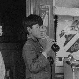 Neches Texas in 1939Young migrant boy standing beside public water fountain enjoys a rare treat, a 5 cent RC cola at a gas stop near Neches in 1939. |