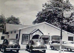Cars line up for a good steak at Perry's Steak House in Palestine in 1940's Palestine. |