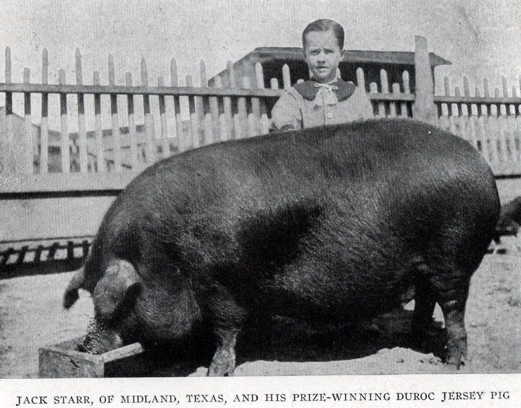 Jack Starr and His Prize Winning Pig in Midland Texas in 1918
